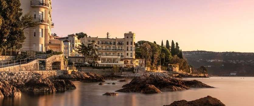 Das Hotel mit seiner wunderbaren Lage an der Kvarner Bucht mit Blick einerseits auf die Inseln Cres und Krk und anderseits auf die Stadt Rijeka gleicht einem kleinen Paradies. „Ich habe sooft und jedes Mal mit solcher Bezauberung von diesem irdischen Paradies gelesen“, schrieb Anton Tschechow als er 34jährig in Opatija weilte. Auch er war davon angetan, „dass von hier aus sowohl Fiume als auch die fernen, von lila Nebeln gefärbten Inseln sichtbar sind.“ Genau dieser Blick bietet sich den Gästen des Miramar von den Balkonen der Zimmer, von den Terrassen am Meer, vom Garten, vom Tanzsaal, …