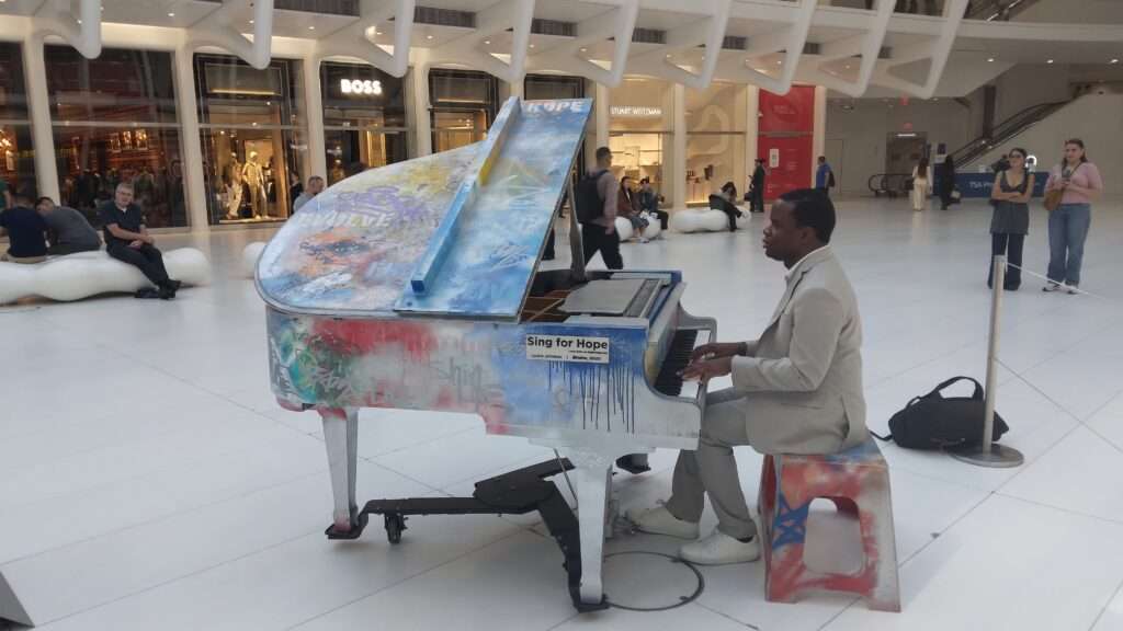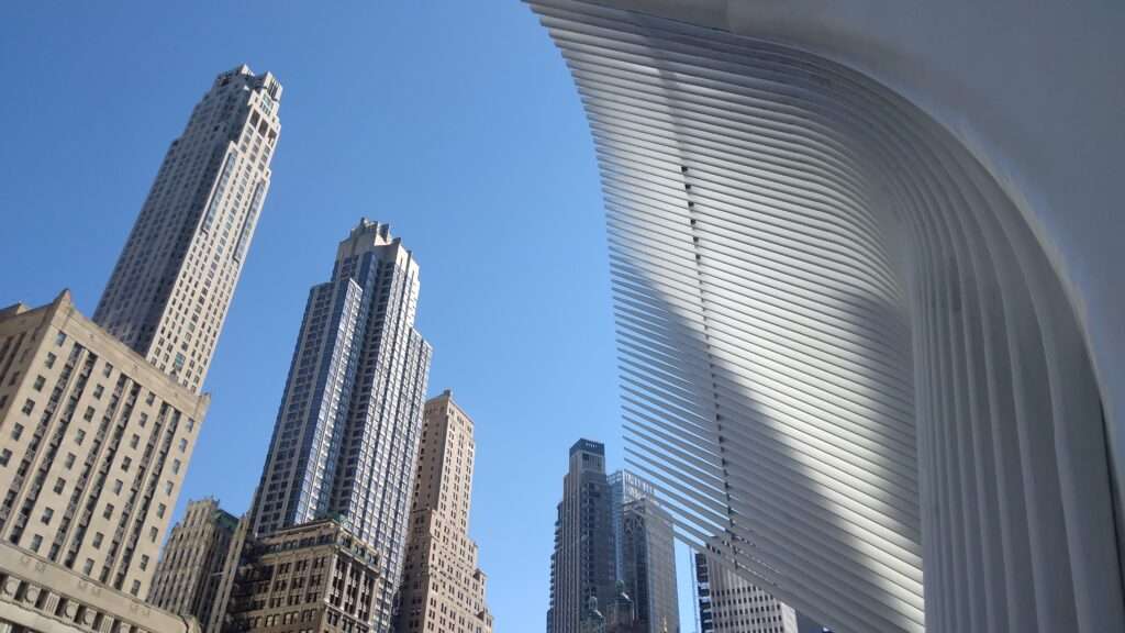 Doch das ist nicht im negativen Wortsinn gemeint, denn es gibt ja auch ein anderes Paar der Sinneseindrücke, das uns auf Schritt und Tritt begegnet: Ruhe und/oder tolle Musik gepaart mit Schönheit und Eleganz. Wenn wir durch die Straßenschluchten wandern, gleitet mein Blick unentwegt nach oben um die Häuser zu betrachten: ein moderner Wolkenkratzer aus Glas neben alten Backsteinbauten, mal mit kunstvoll gestalteten Fassaden, dann wieder ästhetisch strukturiert durch die Feuerleitern, die ich bisher nur aus Filmen kannte. Ebenso faszinierend ist die Architektur von Verkehrsknotenpunkten wie der altehrwürdigen Grand Central Station oder dem modernen Oculus.