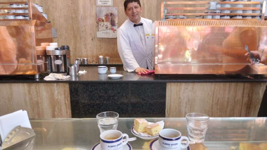 Das Wichtigste für uns in der Calle Florida ist nicht ein Geschäft, sondern das Florida Garden, ein altes Café, das wir auch schon beim letzten Mal immer wieder aufgesucht haben, weil es hier den besten Espresso der Stadt gibt. Wir stellen uns an die Theke, bestellen, beobachten das Treiben im Lokal, genießen den Kaffee und fühlen uns fast wie in Italien. Und schon beim zweiten Besuch werden wir wiedererkannt und herzlich begrüßt, als wären wir Stammgäste.