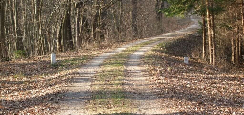 Diese junge Grenze wurde ja im Laufe des vorigen Jahrhunderts Teil des Eisernen Vorhangs. An einem Wegabschnitt steht daher ein ehemaliger Grenzwachturm und ein Stück Stacheldraht als mahnende Erinnerung an jene Zeit, die für mich als Kindheitserinnerung gespeichert ist. Meine Großmutter hatte zwei Cousinen, die in Budapest lebten und in den späten 1970er Jahren sind meine Eltern mit uns regelmäßig nach Ungarn gereist. Der Grenzübertritt war für mich als Kind eine unheimliche, ja manchmal furchteinflößende Angelegenheit: Soldaten mit Maschinengewehren im Anschlag kannte man damals nicht einmal aus dem Fernsehen. Der Grenzübergang in Heiligenkreuz mit Wachtürmen, Stacheldraht und Scheinwerfern, mehreren Grenzbalken hintereinander, die jeweils nur für ein Auto geöffnet wurden, den unzähligen Soldaten, … all das prägte sich mir ein als „Eiserner Vorhang“. Und heute spaziere ich entlang dieser offenen Grenze, der Weg verläuft manchmal ein Stück auf ungarischem Boden, dann wieder stehen die Grenzsteine links und rechts des Weges. Für mich ist es immer wieder bewegend, wenn ich als Grenzgängerin – hier mitten im Wald oder mit dem Auto am heute offenen Grenzübergang in Heiligenkreuz – diese Grenze überschreite! Es ist das Gefühl, ein Stück Geschichte selbst erlebt zu haben, und erfreulicherweise ist es ja eine Wendung ins Positive, die sich hier ereignet hat. Umso unverständlicher ist es für mich, wenn in den letzten Jahren im Namen der Sicherheit gefordert wird, dass diese Grenze wieder geschlossen werden sollte. Zu erleben, dass nun auf österreichischer Seite eine neue Grenze gezogen wird, grenzt schon an Ironie!