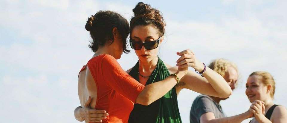 Und dann, beim vierten Stück, oder vielleicht war es auch das fünfte, tauschten sie die Rollen, ohne es vorher zu verabreden, ihre Körper trafen die Entscheidung, die Hände wanderten von der Taille zur Schulter oder von der Schulter zur Taille und gaben dem Tanz die entgegengesetzte Richtung, die allerdings, wie sie herausfanden, gar nicht entgegengesetzt […]